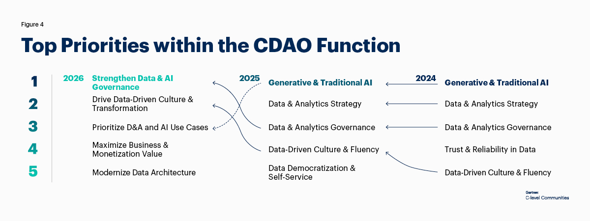 Based on 350 CDAO responses from Gartner C-level Communities’ proprietary Leadership Perspective Survey, March 2026.